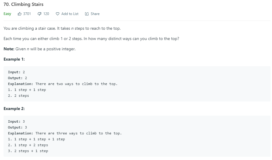 계단을 오르는 데 정상까지 오르려면 n번의 step을 거쳐야 한다.