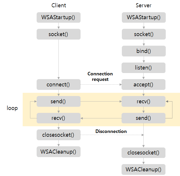 - Winsock을 사용할 수 있도록 초기화(Initialize)한다.