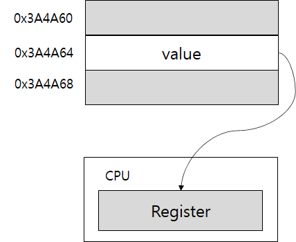 CPU의 메모리 컨트롤러(MC) 또는 메모리 컨트롤러 유닛(MCU)은 정렬된 값을 읽을 때 다음과 같이 곧바로 레지스터에 저장할 수 있다.