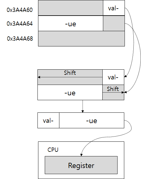 하지만 정렬되지 않은 값을 읽을 땐 다음과 같은 작업을 수행 후 레지스터에 저장한다.