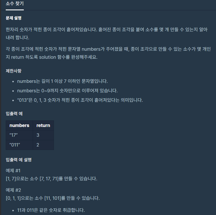 i.e. 주어진 문자열이 "17"일 때 소수 11을 만들 수 있는지 확인할 경우