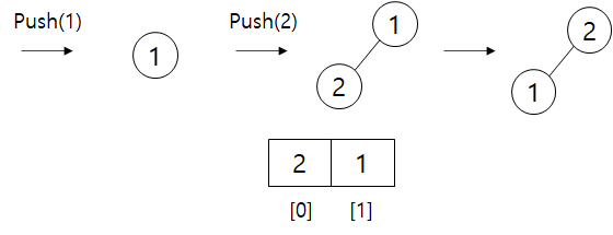 (1) push(1), push(2). 현재 가장 큰 수: 2(top)