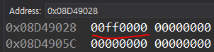 Intel의 x86, x64와 같은 H/W 환경인 경우 little endian으로 저장되기 때문에 0x00FF0000와 같은 값을 저장하면 위와 같이 거꾸로 저장된다. 상위 2번째 바이트에 FF를 설정했지만 위 그림에선 낮은 주소에 FF가 설정된 것을 볼 수 있다. SetPixel 함수에 RGB(255, 0, 0), 즉 0x000000FF를 저장해도 결국은 위와 같이 저장된다. 이는 아마 SetPixel 내부에서 변경되어 저장되지 않을까 싶다. 어쨌든 컬러값을 의도대로 설정하려면 위 그림의 메모리 형태로 저장되어야 한다는 것만 기억하면 된다.