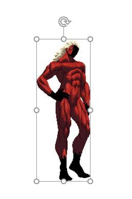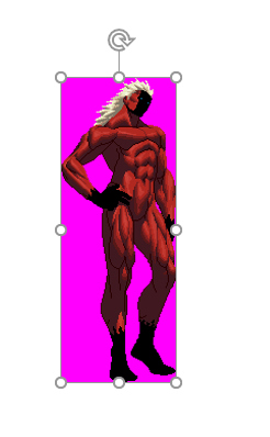 보다시피 캐릭터 자체에 검정색이 들어있기도 하고 검정색을 컬러키로 쓰고 싶진 않아서 캡쳐 등 별 짓을 다해보다가 알아냈다.. 우선 첫번째 그림처럼 배경색이 없는 캐릭터 이미지를 파워포인트에 붙여넣는다. 그럼 다음과 같이 선택된다.