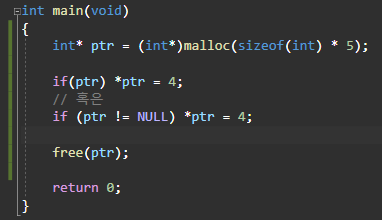 malloc 함수는 메모리 할당에 실패하면 null을 반환하는데 (ex. 메모리 공간이 부족한 경우 )