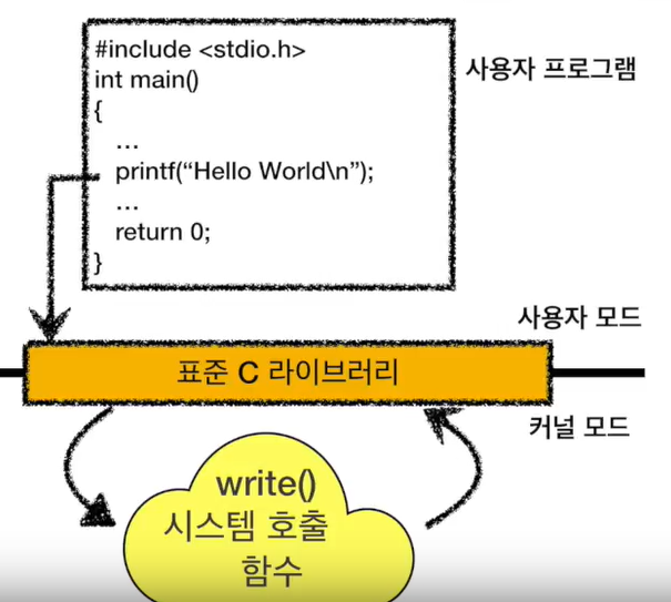우리는 보통 사용자 영역에서 프로그램을 작성하기 위해 C, C++, C#, Java 등과 같은 고급 언어를 사용하여 작성한다. 이러한 프로그램은 보통 사용자 모드에서 동작한다. 하지만 프로그램이 하는 작업들 중엔 메모리 관련 혹은 입출력과 같이 운영체제만이 수행할 수 있는 작업들이 존재한다. 이러한 서브 루틴들은 사용자 모드의 프로그램에서 직접 호출 및 사용할 수 없다. 이를 위해 운영체제는 시스템 호출(system call)이라는 일종의 API와 같은 인터페이스를 제공해준다. 사용자 모드의 프로그램은 시스템 호출을 통하여 운영체제 내부의 적절한 서비스 루틴을 간접적으로 호출하게 된다. 예를 들어 특정 장치(모니터)에 데이터 출력하기 위해 printf() 함수를 사용했다면, 실제론 다음과 같이 내부적으로 유닉스의 write()라는 시스템 호출 함수를 이용하여 그 결과를 프로그램에 전달하는 것을 알 수 있다. 이외에도 시스템 호출과 관련된 부분으로 메모리, 네트워크 통신, 디바이스 제어, 프로세스 제어 등이 있다. 즉 시스템 콜은 응용 프로그램이 커널과 분리된 상태에서 안전하게 커널에 접근하여 커널의 기능을 이용할 수 있는 행위라 할 수 있다.