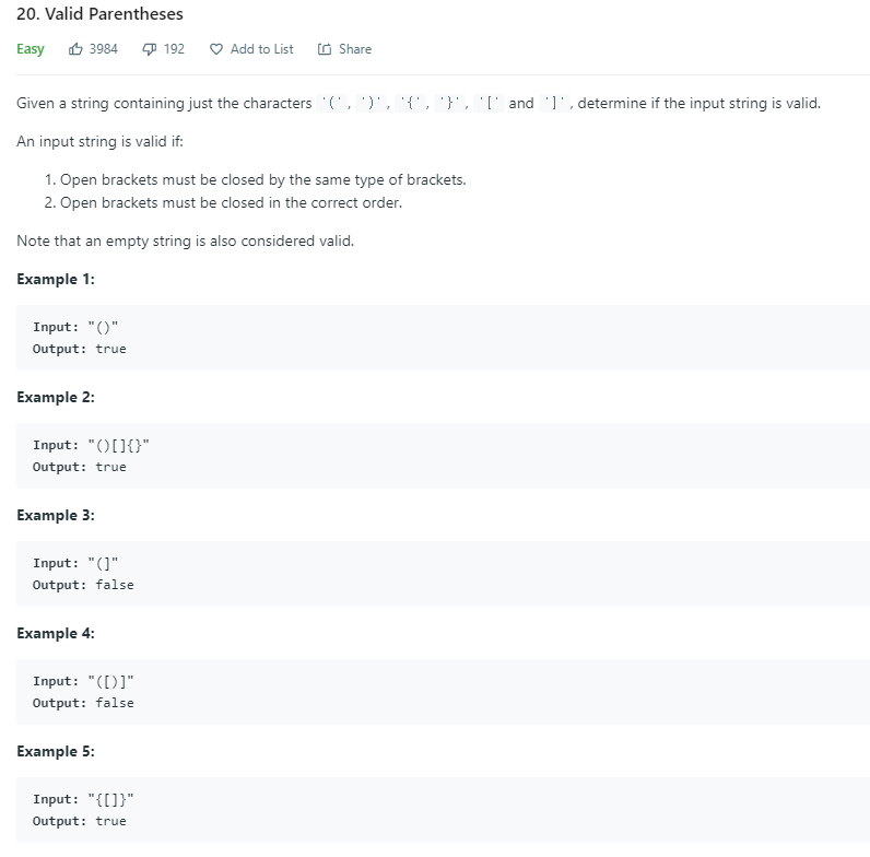 스택의 대표적인 문제인 괄호 검사 알고리즘 문제이다. 괄호로 이루어진 문자열이 주어지는데 이 문자열 속 괄호들이 쌍에 맞으며 순서 또한 맞는지 검사하는 문제이다.