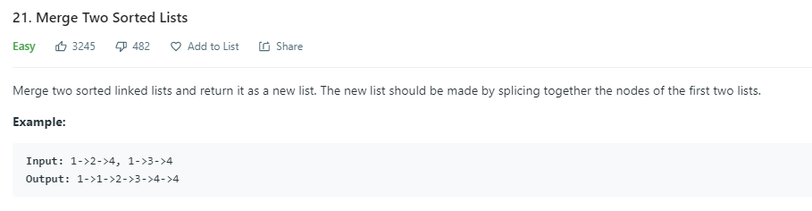 연결 리스트를 이용하여 주어진 정렬된 두 리스트를 병합시켜 새 리스트를 만들어 반환하는 문제이다.